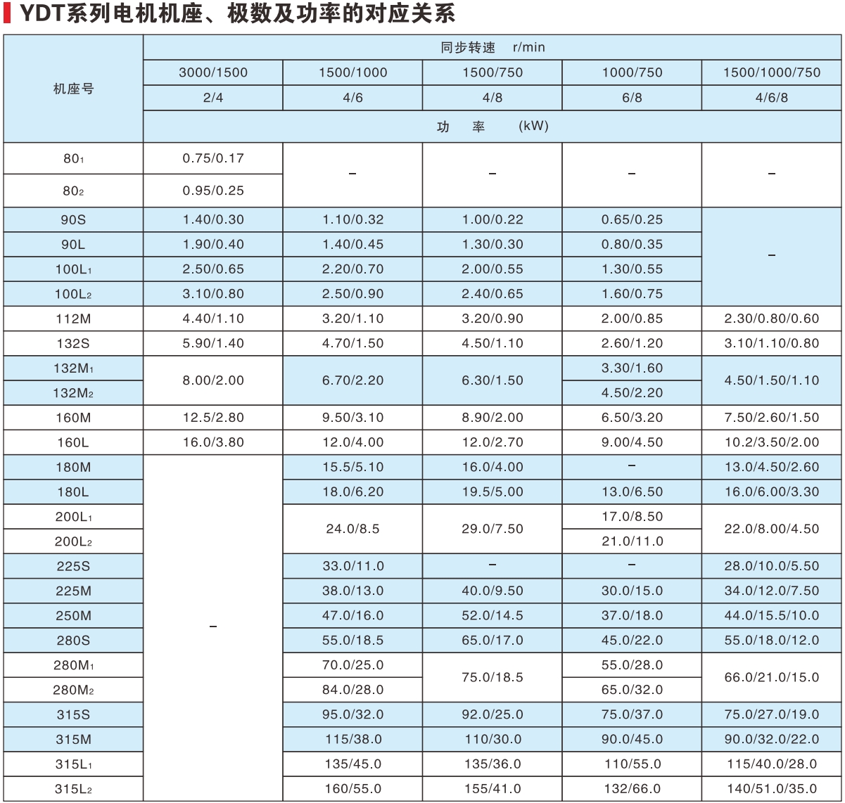 YDT系列变极多速电机,主要用于风机泵类负载。广泛应用于纺织、矿山、锅炉、热电厂灌、空调等进行了流量(风力)调节和水量(压力)调节的场合。